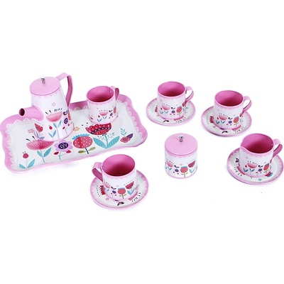RAPPA - Riad kovové s kvetinovým motívom Plechový jedálenský set s motívom kvetín. Obsahuje jeden tácku, hrnčeky, kanvičku a taniere. Celkom 12 ks riadu.